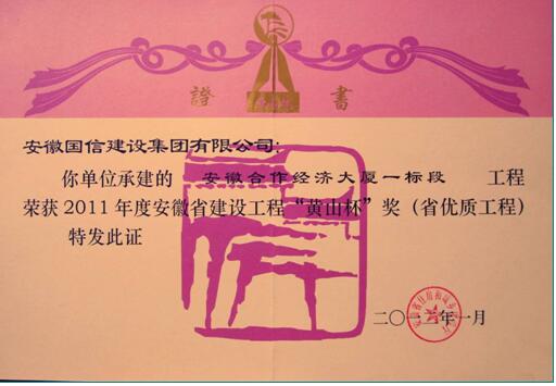 三、企业近年获得“华东杯、黄山杯、琥珀杯”证书